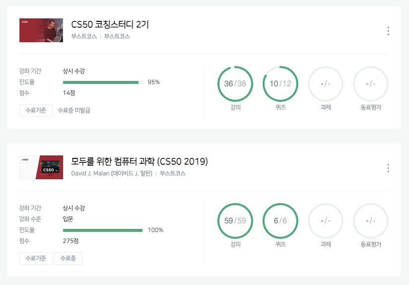 부스트코스 CS50 코칭스터디 2기 수료